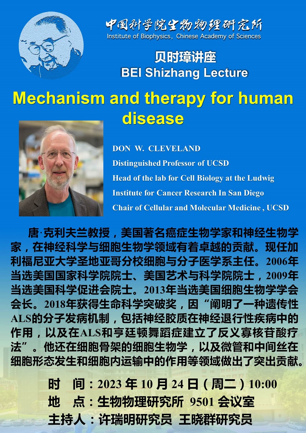 2023年10月24日上午10:00 贝时璋讲座报告:Mechanism and therapy for human disease