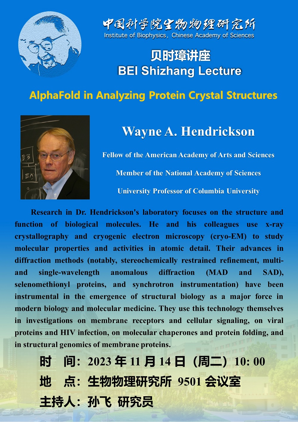 2023年11月14日上午10:00 贝时璋讲座报告:AlphaFold in Analyzing Protein Crystal Structures