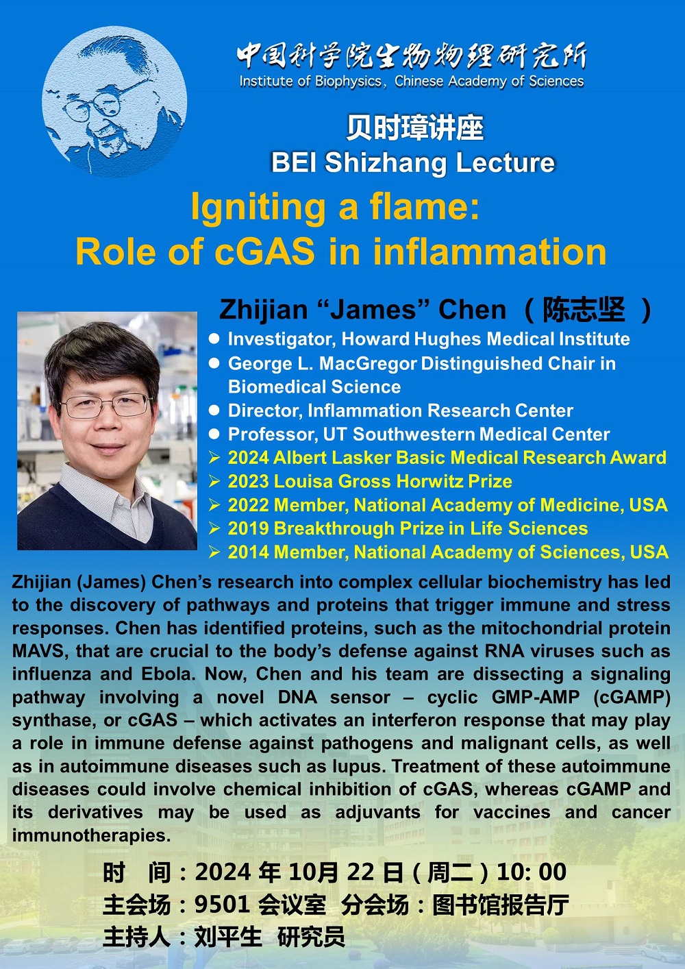 2024年10月22日上午10:00 贝时璋讲座:Igniting a flame: Role of cGAS in inflammation