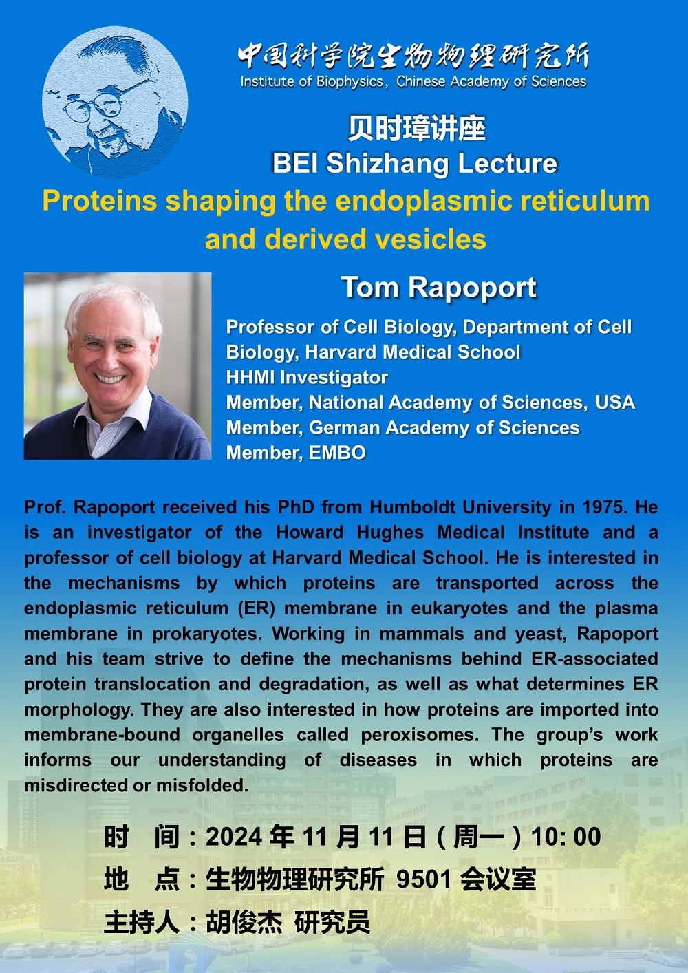 2024年11月11日上午10:00 贝时璋讲座:Proteins shaping the endoplasmic reticulum and derived vesicles