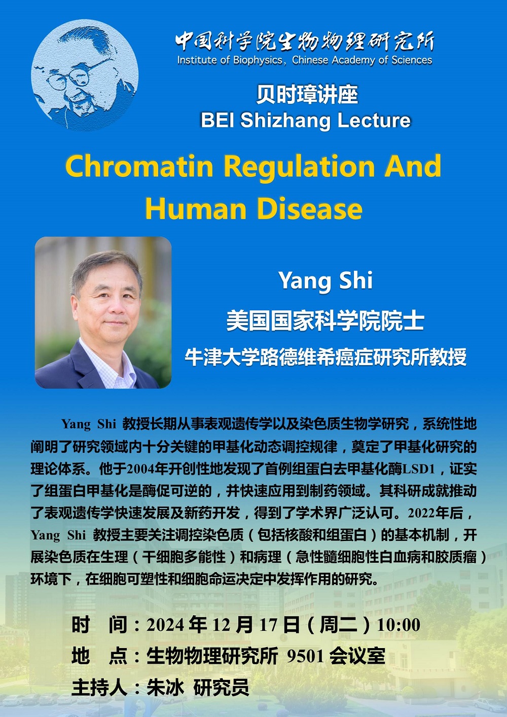 2024年12月17日上午10:00 贝时璋讲座:Chromatin Regulation And Human Disease