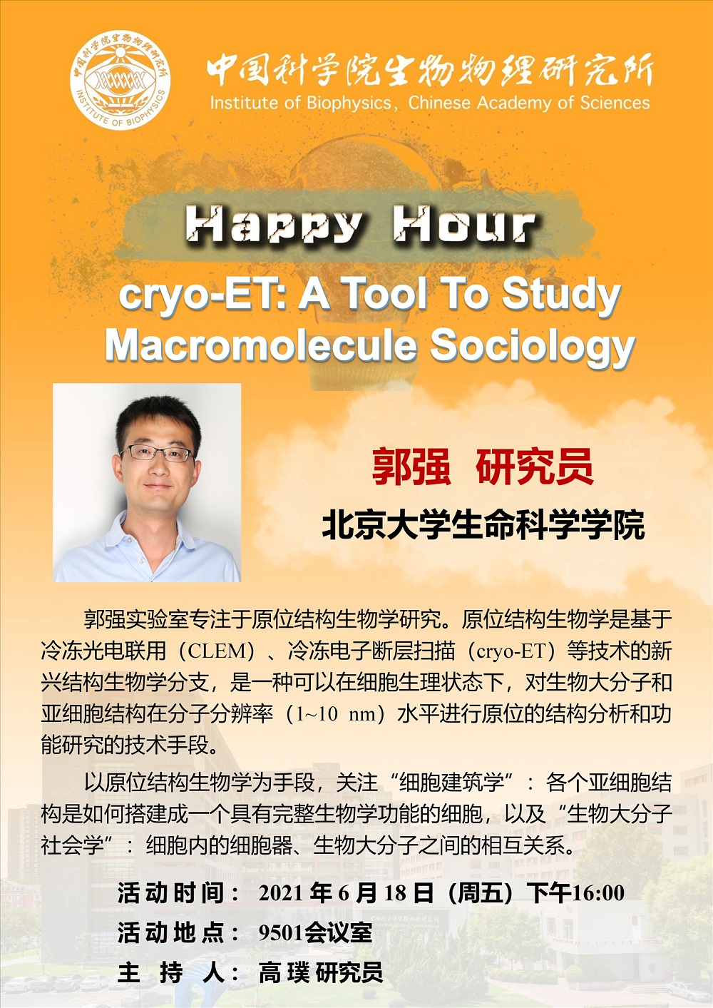 2021年6月18日下午16:00 Happy Hour:cryo-ET: A Tool To Study Macromolecule Sociology