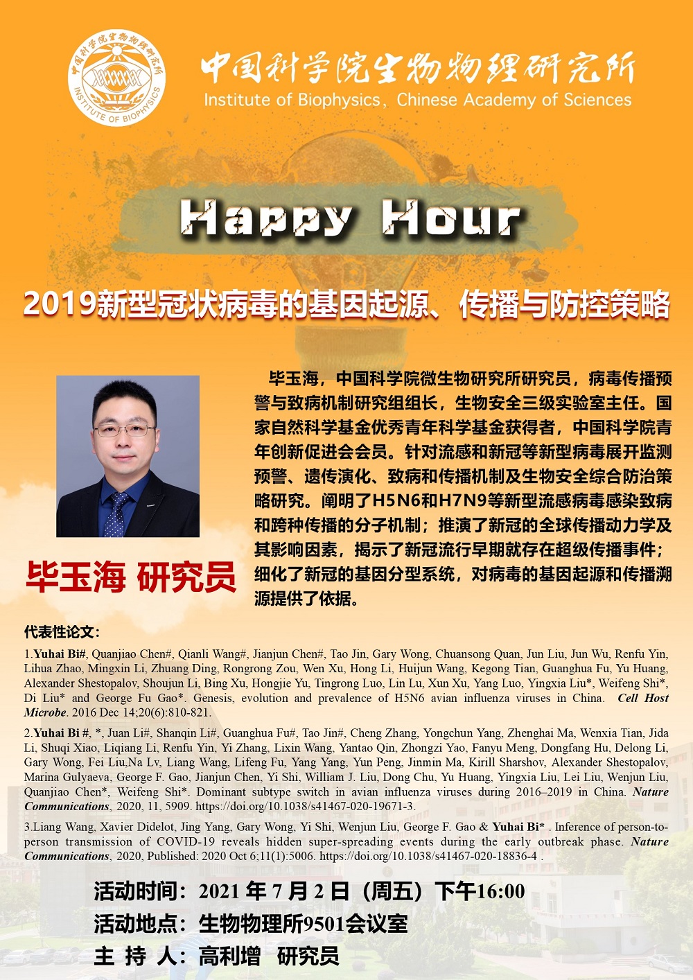 2021年7月2日下午16:00 Happy Hour:2019新型冠状病毒的基因起源、传播与防控策略