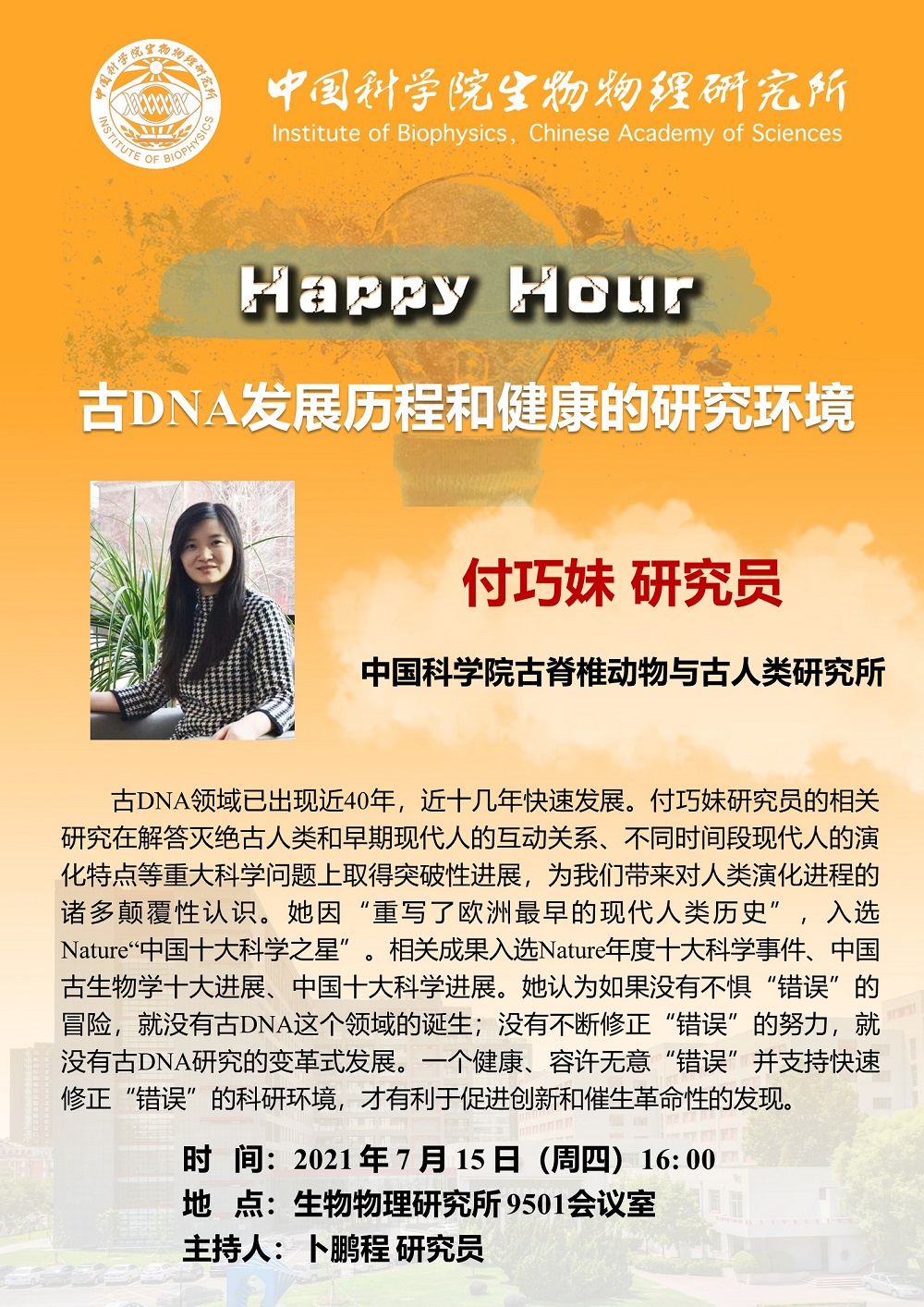 2021年7月15日下午16:00 Happy Hour:古DNA发展历程和健康的研究环境