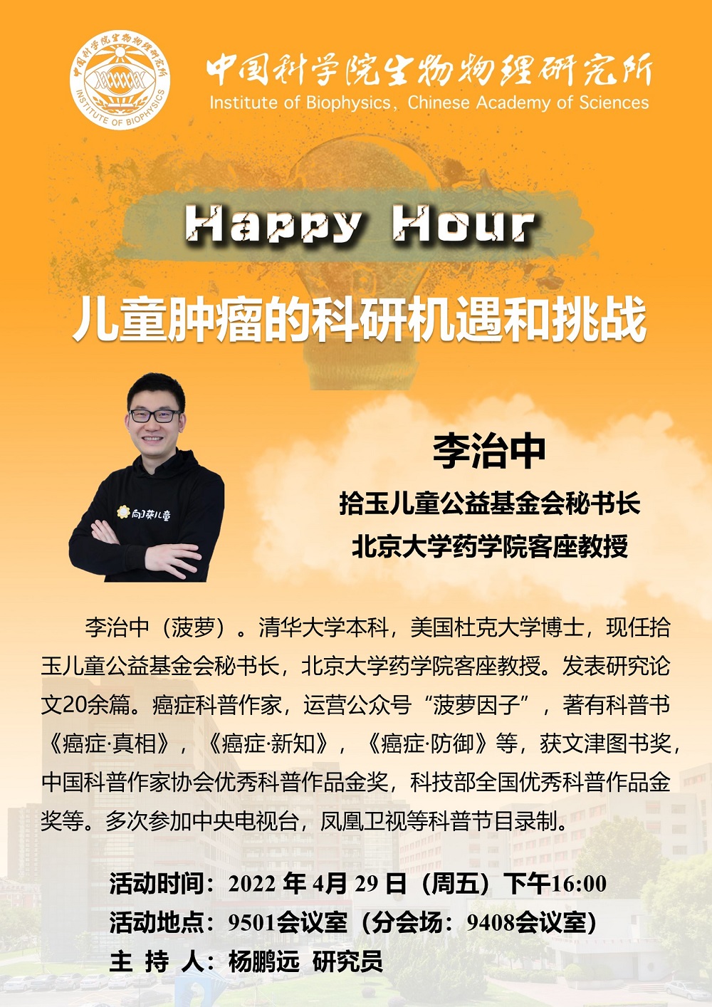 2022年4月29日下午16:00 Happy Hour:儿童肿瘤的科研机遇和挑战