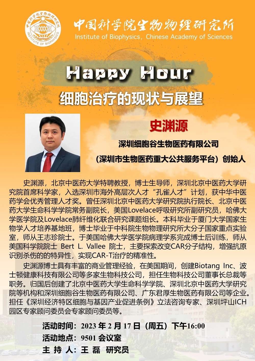 2023年2月17日下午16:00 Happy Hour:细胞治疗的现状与展望