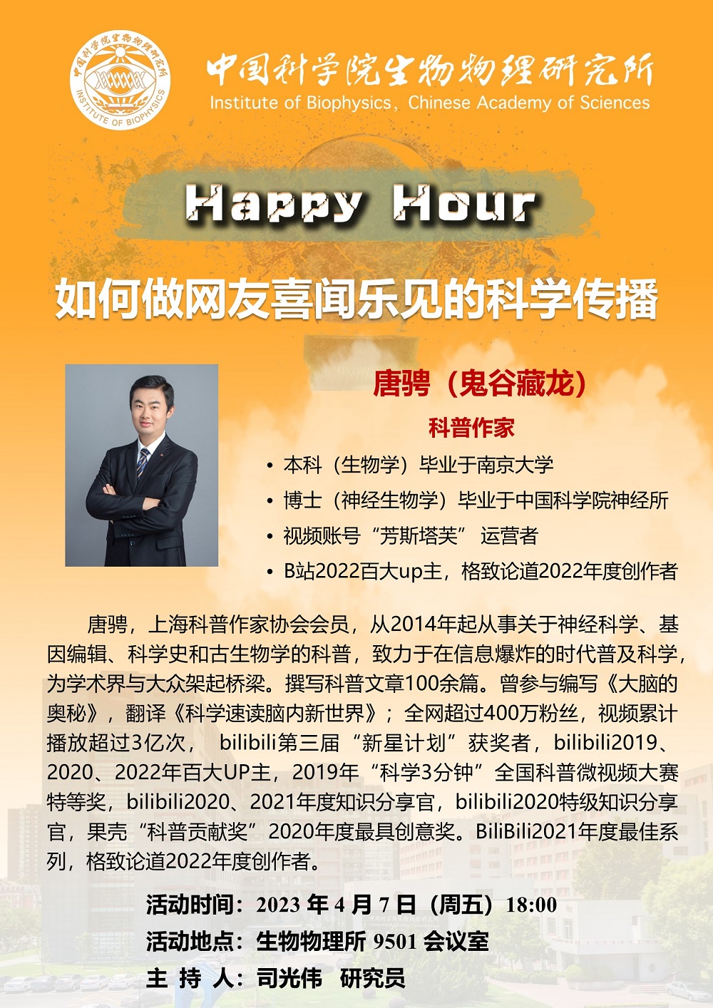 2023年4月7日下午18:00 Happy Hour:如何做网友喜闻乐见的科学传播