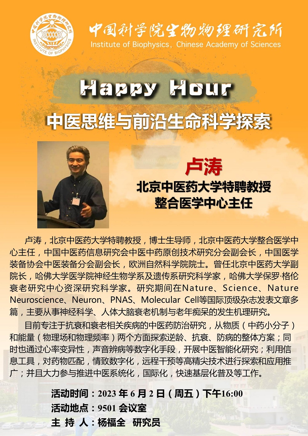 2023年6月2日下午16:00 Happy Hour:中医思维与前沿生命科学探索