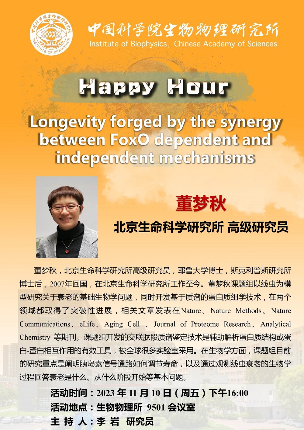 2023年11月10日下午16:00 Happy Hour:Longevity forged by the synergy between FoxO dependent and independent mechanisms