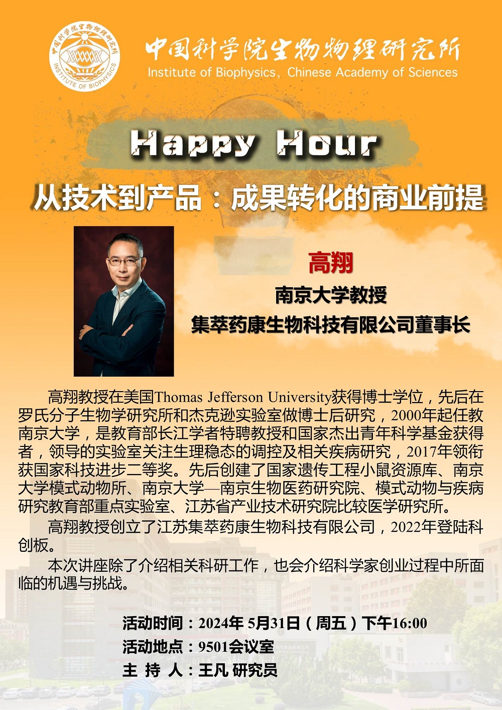 2024年5月31日下午16:00 Happy Hour:从技术到产品:成果转化的商业前提
