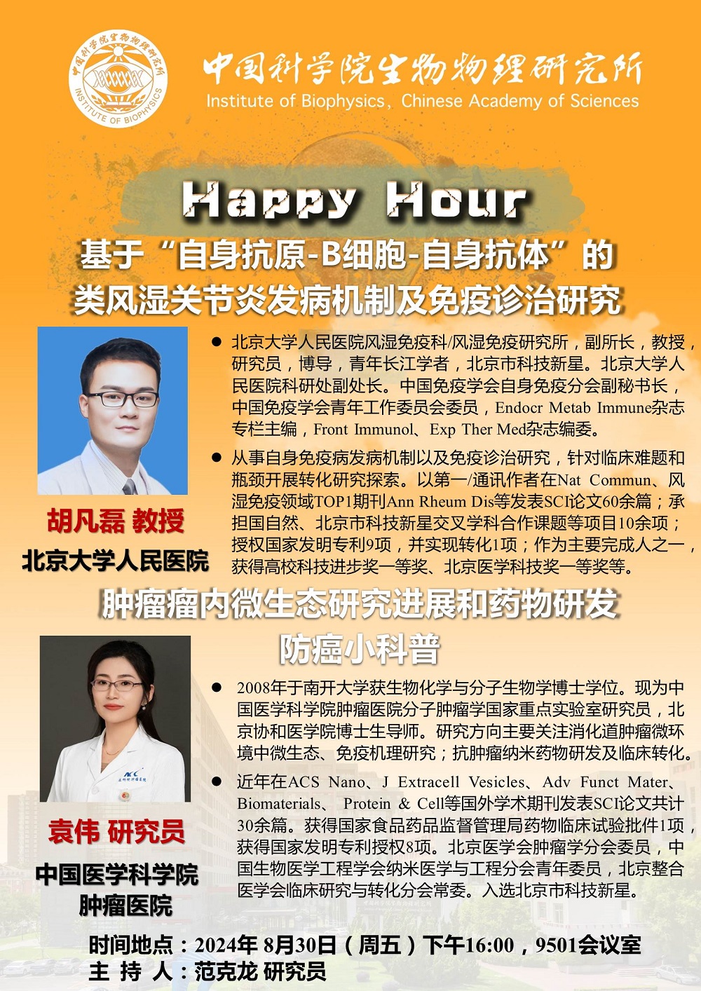 2024年8月30日下午16:00 Happy Hour:北京大学人民医院、中国医学科学院肿瘤医院研究员学术报告