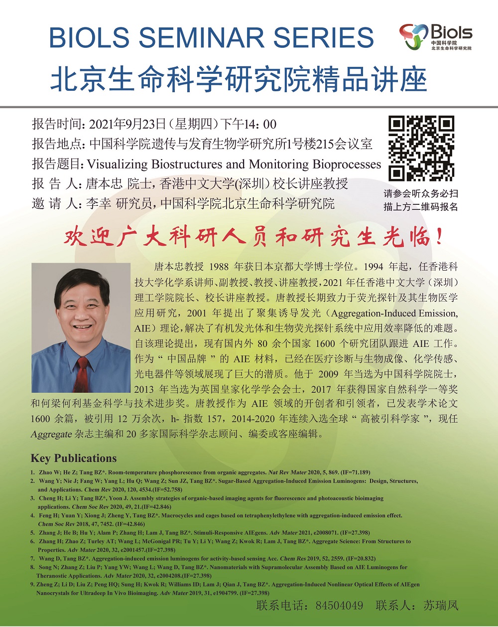 2021年9月23日下午14:00 北京生命科学研究院精品讲座:Visualizing Biostructures and Monitoring Bioprocesses