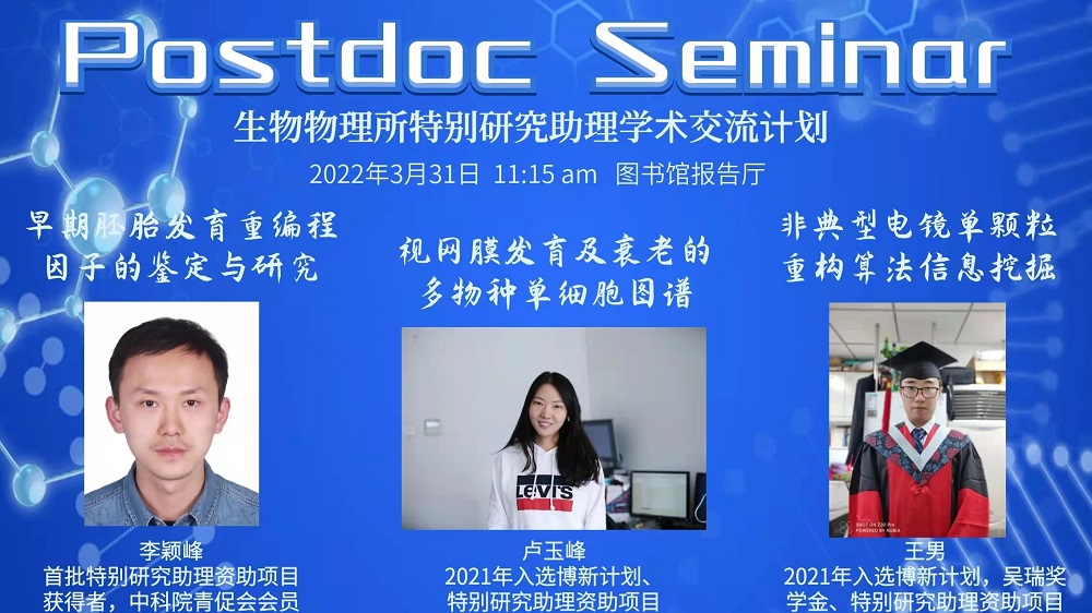 2022年3月31日中午11:15 【Postdoc Seminar】特别研究助理学术交流:李颖峰博士,卢玉峰博士,王男博士
