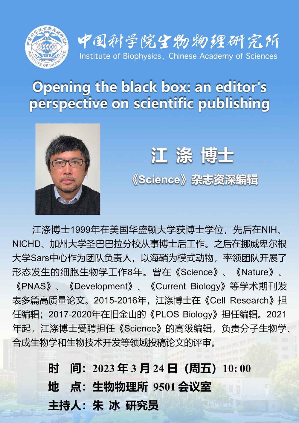 2023年3月24日上午10:00 学术报告:Opening the black box: editor's perspective on scientific publishing