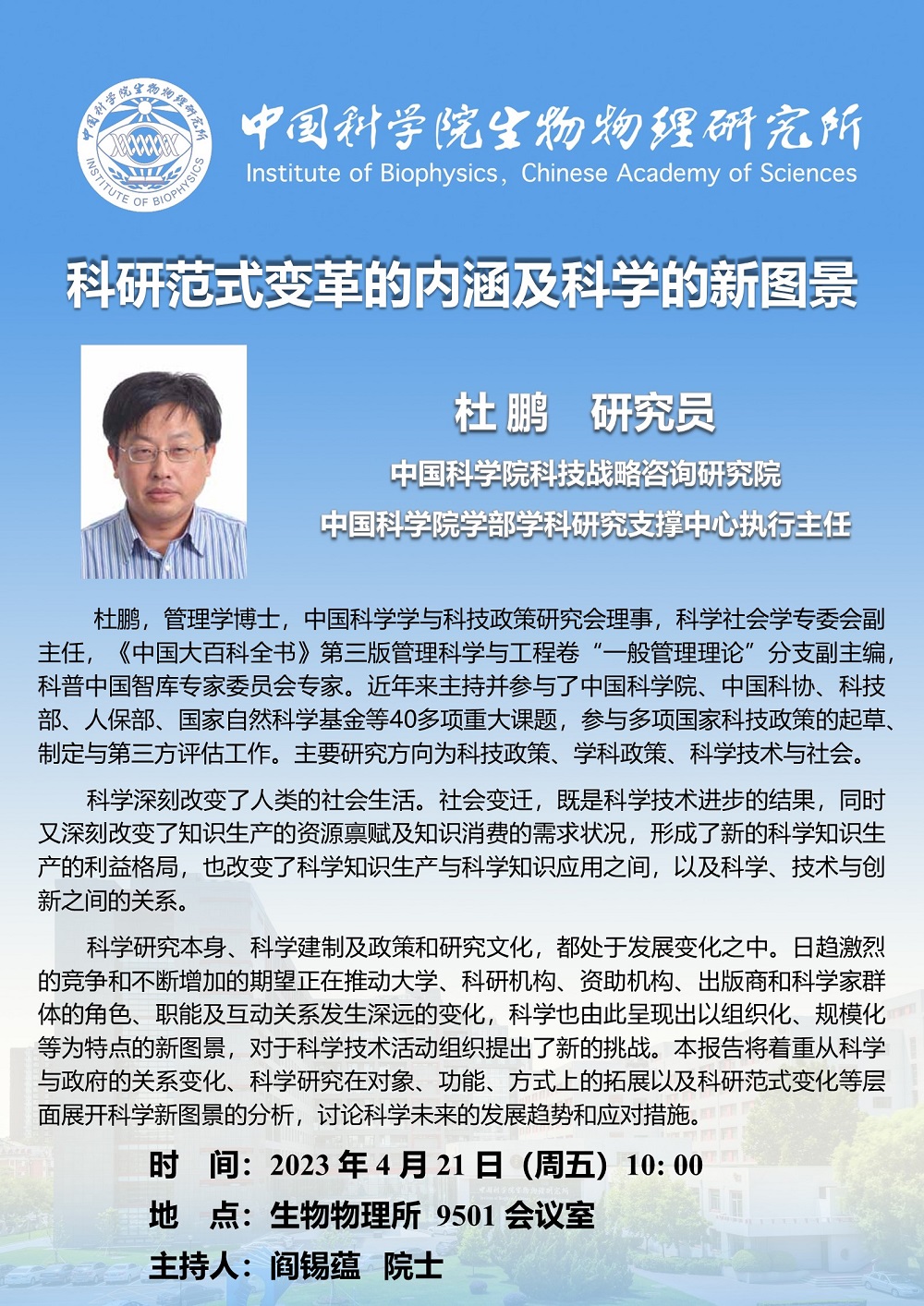 2023年4月21日上午10:00 所级报告:科研范式变革的内涵及科学的新图景