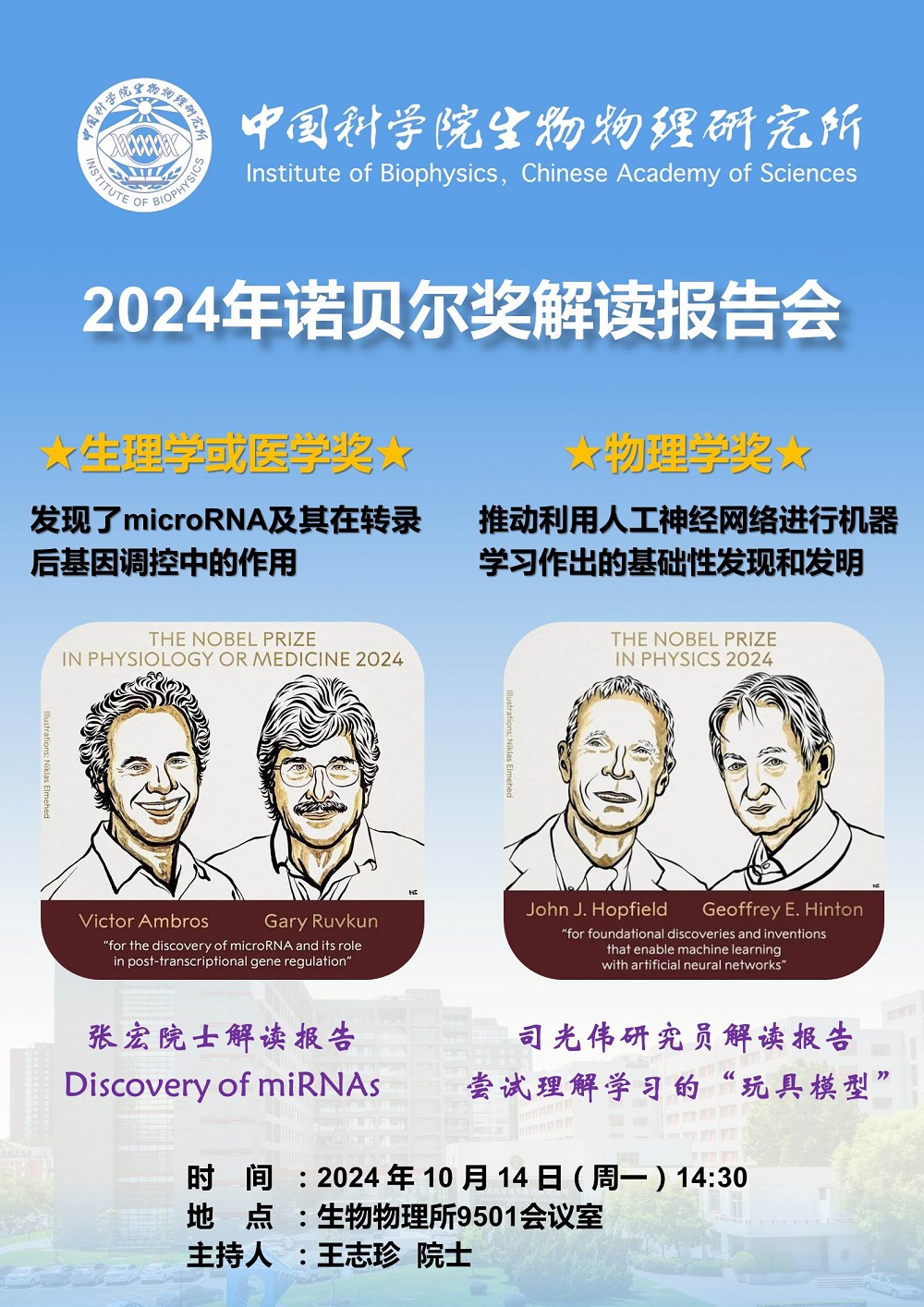 2024年10月14日下午14:30 所级专题报告:2024年诺贝尔奖解读报告会