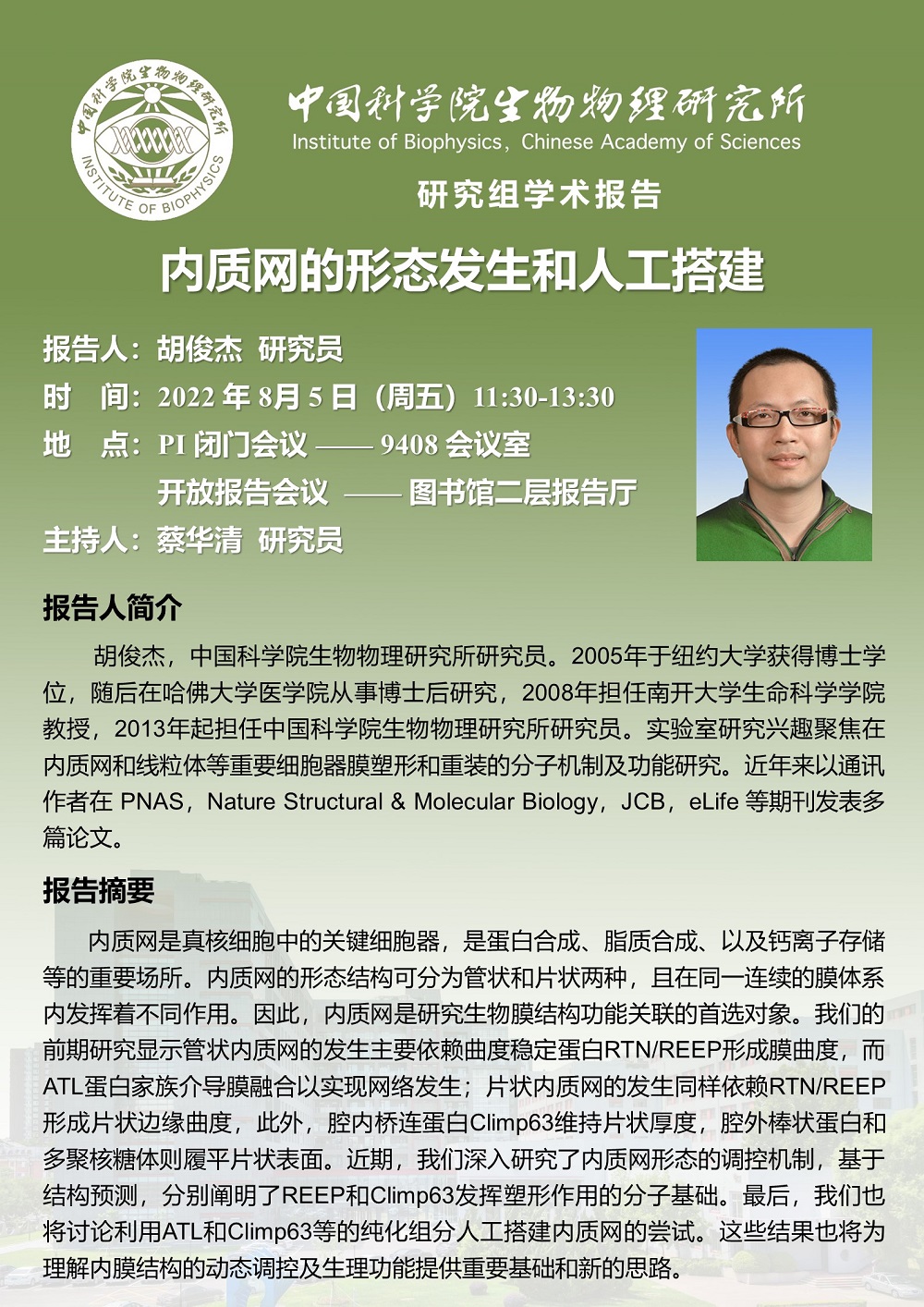 2022年8月5日中午11:30 研究组学术报告:内质网的形态发生和人工搭建