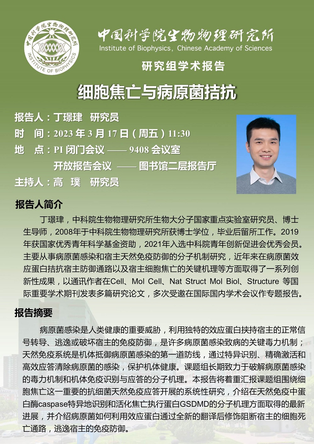 2023年3月17日中午11:30 研究组学术报告:细胞焦亡与病原菌拮抗