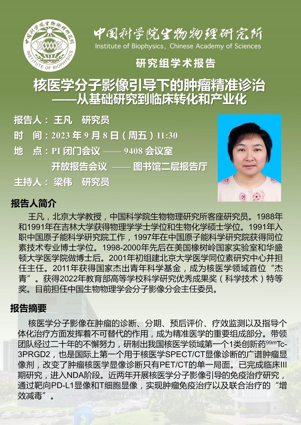 2023年9月8日中午11:30 研究组学术报告:核医学分子影像引导下的肿瘤精准诊治——从基础研究到临床转化和产业化
