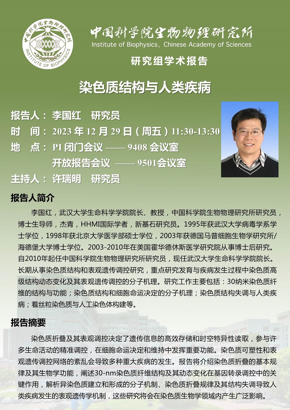 2023年12月29日中午11:30 研究组学术报告:染色质结构与人类疾病
