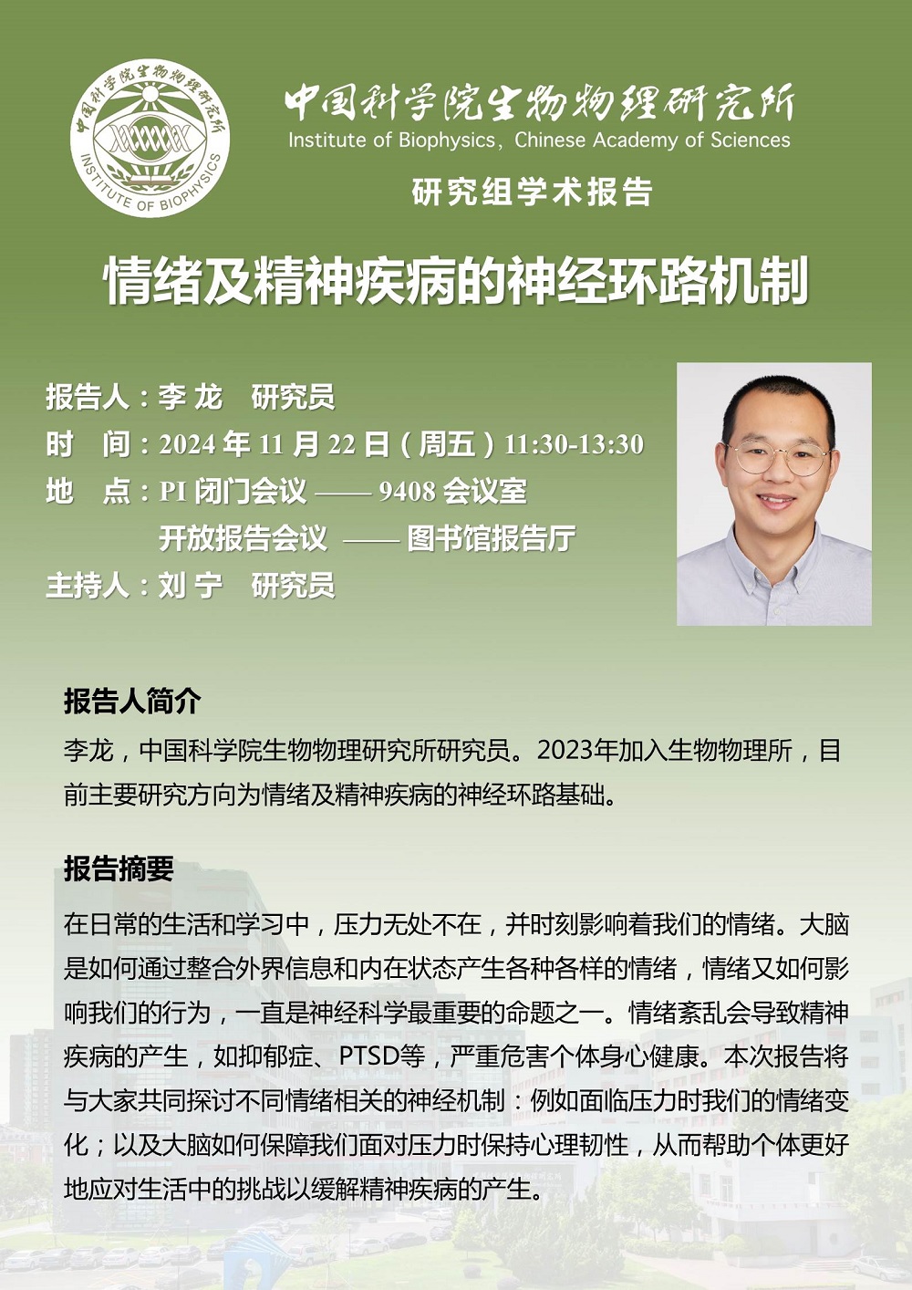 2024年11月22日中午11:30 研究组学术报告:情绪及精神疾病的神经环路机制