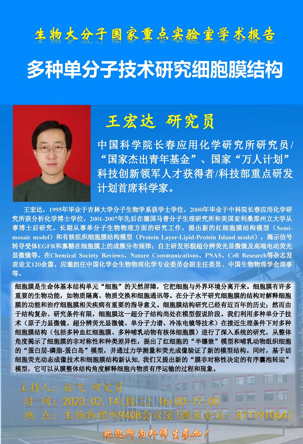 2023年2月14日下午16:00 生物大分子国家重点实验室学术报告:多种单分子技术研究细胞膜结构