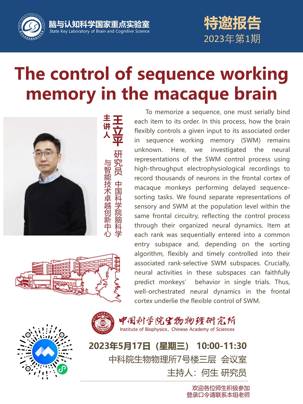 2023年5月17日上午10:00 脑与认知国家重点实验室学术报告:The control of sequence working memory in the macaque brain