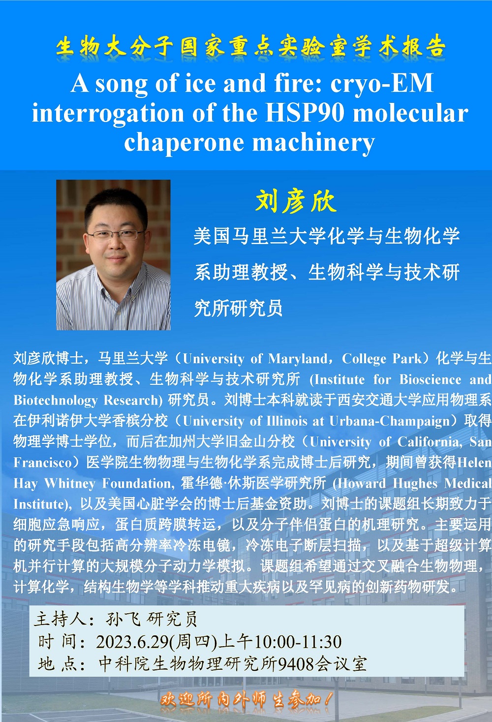 2023年6月29日上午10:00 生物大分子国家重点实验室学术报告:A song of ice and fire: cryo-EM interrogation of the HSP90 molecular chaperone machinery