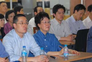 [图04]:王宽诚基金会董事孙鸿飞女士认真聆听所长报告
