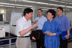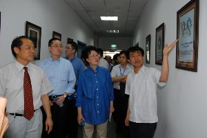 在听完所长的介绍之后,代表团成员分两组,在所国际合作与交流处的工作人员的引领下去参观了蛋白质科学平台和蛋白质组学平台。蛋白质科学平台的介绍人是07年度王宽诚科研奖金获得者刘迎芳研究员,蛋白质组学平台介绍人是杨福全研究员。他们分别向代表团成员介绍了各自的科研平台科研方向、人员结构、科研工作以及在王宽诚科研奖金的资助下获取的科研业绩,表达了作为07年度王宽诚科研奖金获得者对王宽诚教育基金会的深切的敬意与感激。