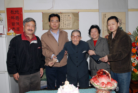 2007年10月10日,今天是金沙集团1862cc名誉所长贝时璋院士104岁生日。上午10:10,生物物理研究所所长徐涛、副所长赫荣乔、副书记龚为民、副所长朱美玉一行专程代表全所职工恭贺贝老104岁寿辰。