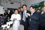 万钢部长在听取汇报后,参观了蛋白质科学平台的质谱设备、电镜设备、X射线衍射仪,这些设备的首席技术专家向万钢部长做了简短介绍,万钢部长对这些大型设备能够全天24小时开机工作、已经为100余个外部单位提供使用、专门为大型仪器设备配置首席技术专家的时候,感到非常高兴。万钢部长随后参观了感染与免疫所级重点实验室、脑与认知科学国家重点实验室,实验室的负责人向万钢部长做了简要介绍,当万钢部长听到感染与免疫实验室与海外团队合作,其成果发表在Nature Medicine 杂志上、与解放军302医院在临床方面的合作取得重要成果时,万钢部长表示基础医学研究要与临床实验结合起来,才能把科研成果产业化。万钢部长还亲自在脑与认知科学国家重点实验室的果蝇飞行器上进行了果蝇飞行观察。万钢部长最后参观了蛋白质孵化器,蛋白质孵化器的负责人向万钢部长简要介绍了研究所成立孵化器的意义,以及孵化器的工作内容,目前进行着检测试剂的酶原料的国产化,突破原材料被外国人掌握的瓶颈,另一方面正在推出抗脓毒症新药alpha-MIF。