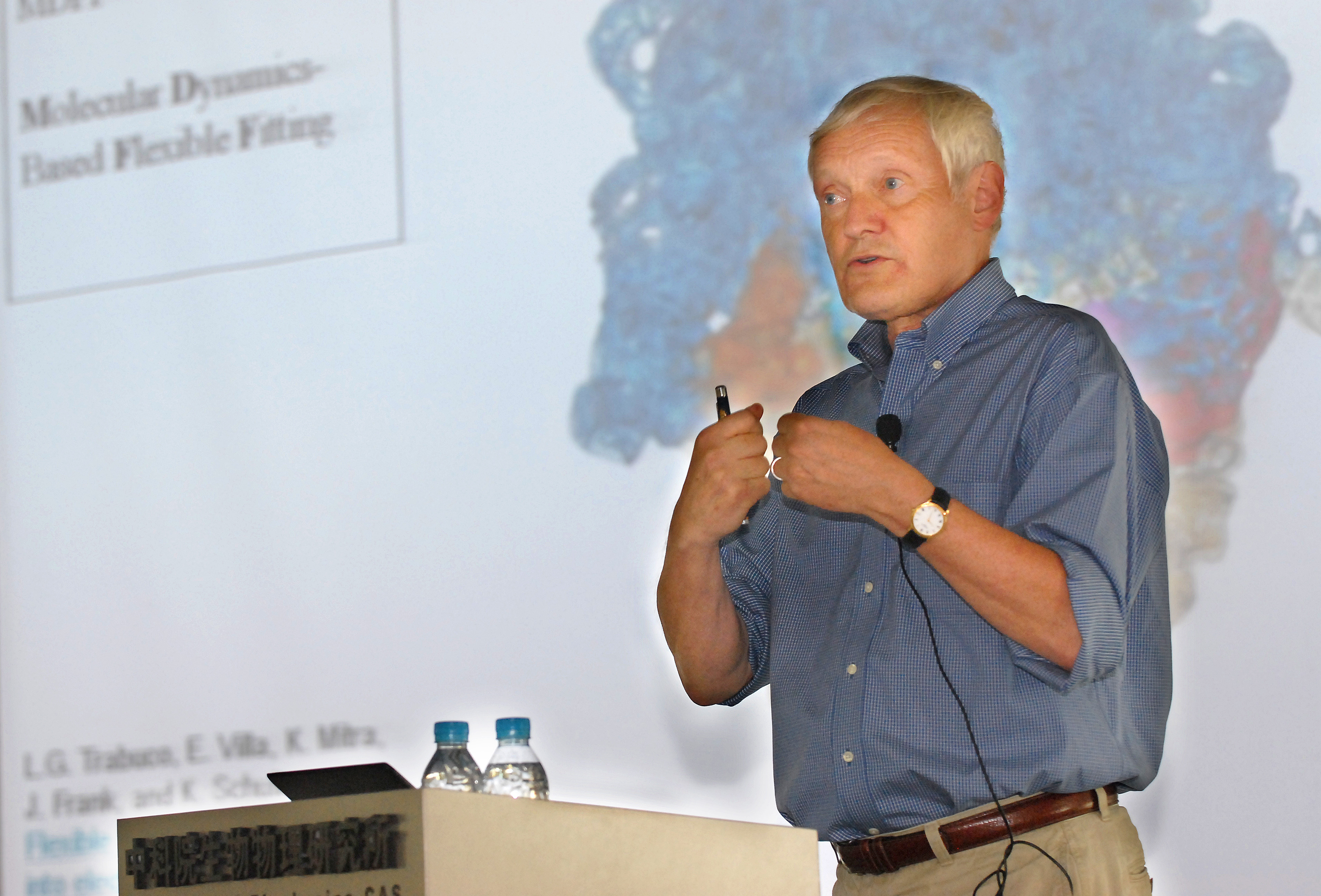2008年7月17日,我们有幸邀请到了美国科学院院士——Joachim Frank教授。Joachim Frank教授的突出贡献是他首次利用冷冻电镜和单颗粒三维重构技术观察到了核糖体的精细结构,并在其随后的工作中对蛋白质翻译的延伸过程的研究有了突破性的研究结果。上午10点整,Joachim Frank教授在我所图书馆报告厅给我们带来了题目为“Translocation and Decoding as Seen by Cryo-EM”的精彩报告。