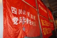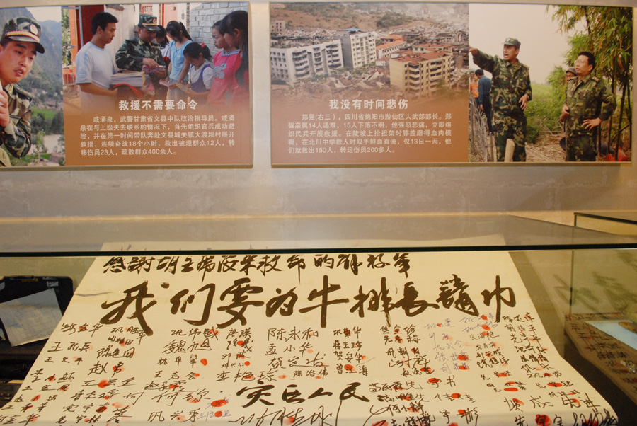 | 参与抗震救灾场的英雄旗帜 | 观看展览的老党员 | 观看展览的年轻同志 |