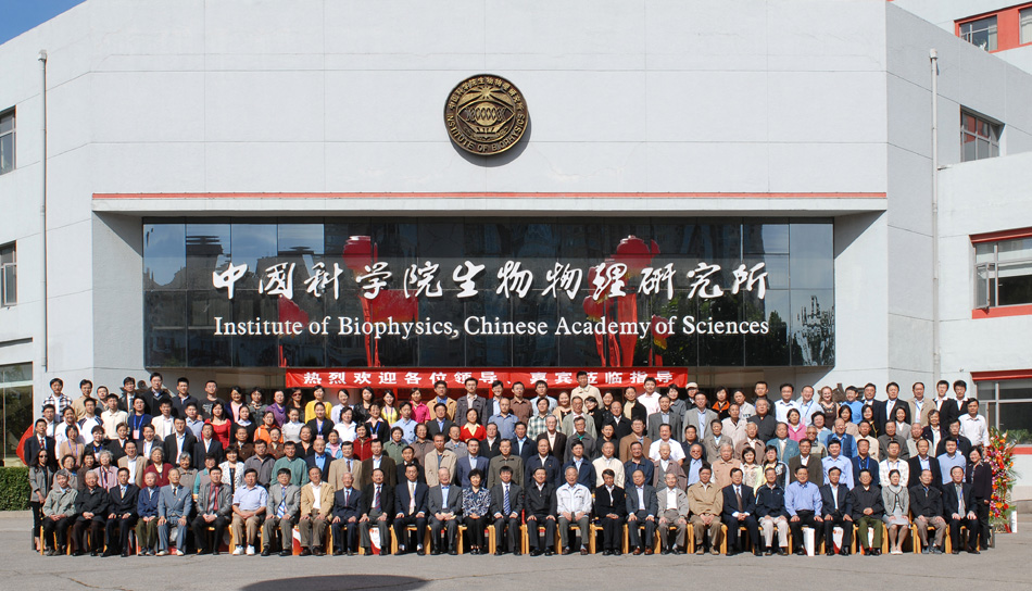 王志珍院士、徐冠华院士和生物物理研究所建所50周年突出贡献先进个人奖获得者合影 |