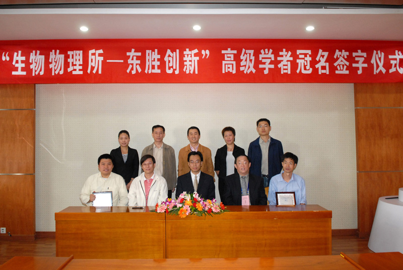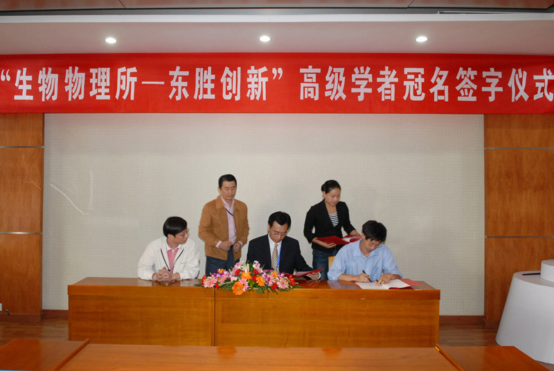 2008年9月26日上午,“生物物理所-东胜创新”高级学者冠名签字仪式在生物物理所举行。“生物物理所-东胜创新”高级学者冠名活动经过生物物理所与东胜创新公司的细致磋商及精心筹划,双方于2008年6月达成协议。协议期限为五年,我所创新岗位正在聘用的正高级和副高级专业技术人员符合一定条件均可申报。每年冠名2-4人,冠名期限为一年,被冠名人除继续享受现岗位薪酬待遇外,享受东胜创新公司支付的津贴。