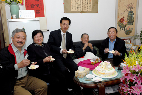 随后, 生物物理所领导班子一起到贝老家中祝贺贝老105岁寿辰。