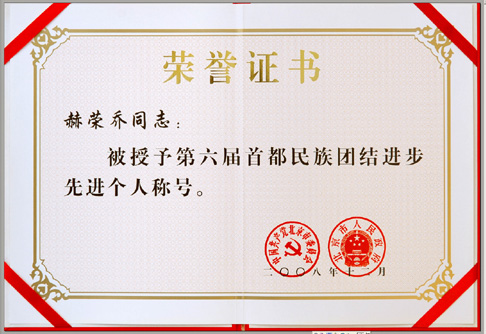 赫荣乔副所长于2008年12月荣获由北京市委、市政府联合颁发的“第六届首都民族团结进步先进个人”荣誉称号,特此表示祝贺!