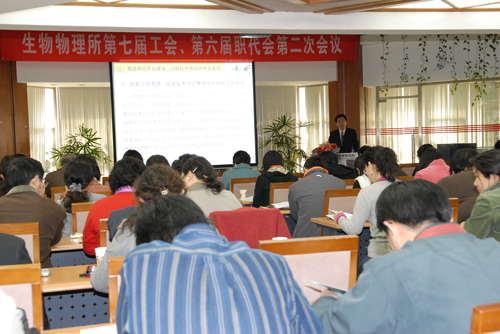 生物物理研究所 2009年3月20日,召开了第七届工会、第六届职工代表大会二次会议。本次大会是在学习实践科学发展观、建设改革创新、和谐奋进的研究所历史进程中召开的,发扬了民主,凝聚了人心。