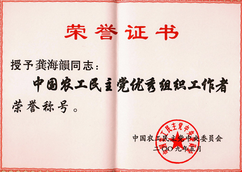 近日获悉,中国农工民主党金沙集团1862cc委员会主任委员龚海韵同志(女)被中国农工民主党中央评为“中国农工民主党优秀组织工作者”。这是继2008年农工民主党生物物理所支部及其成员——王倩(女)、严敏官、周军贤(女)、龚海韵(女)等四位同志在“农工民主党北京市政治交接学习教育活动(2007-2008)”中分别获得先进集体和先进党员光荣称号之后的又一荣誉称号。