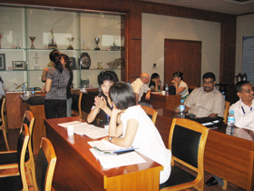 商务部生物医药高新技术援外培训班是中国商务部首次开办的生物医药培训班。生物物理所为了办好这届培训班,组织了强大的授课专家队伍,并精心组织了“华夏文明”,“结构生物学”、“脑与认知”、“免疫学”、“中医药学”、“生物制药”、“生物技术”等专题讲座。其中,华夏文明专题是本次培训班的首个专题。为了提高授课水平,所地合作处特意邀请了康震、孙小淳、曹新宇等名家集中讲授开班课程:《辉煌灿烂的华夏文明》。专家们用两天时间连续讲授了《中国历史》、《中国科技成就史》和《中华传统文化艺术》三个主题,从不同侧面深入诠释了中华文明的精粹。清史专家曹新宇介绍了中国悠久的历史和灿烂的文明,孙小淳教授用流畅浅显的英文剖析了阴阳、五行、周易、历法、中医等传统文明的奥妙。康震教授和四名翻译一道,精彩讲述了涉及音乐、诗歌、文学等广泛内容的中国人文艺术。这些特色课程激起了发展中国家学员对中华文明和中国文化的浓厚兴趣。