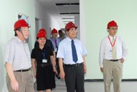 开幕式结束后,白院长在生物物理研究所杨星科书记、赫荣乔副所长和“蛋白质国家实验室(筹)”主任许瑞明研究员的陪同下,视察了即将全面竣工的“蛋白质国家实验室(筹)”大楼。白院长走进正在装修中的实验室,实地考察了实验室布局、科研人员用房、实验台选材及安装。白院长特别叮嘱,要高度重视实验大楼的安全、节能、环保与高效使用。