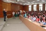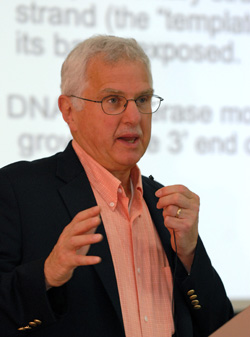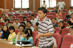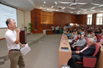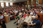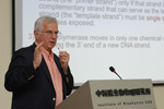 Bruce Alberts教授的到来不仅吸引了大量本所的老师和学生参加此次报告会,微生物所、动物所、遗传发育所、北京大学、清华大学等许多所外的同行也纷纷慕名前来。300余人充满了生物物理所的大礼堂,不少没座同学为了一睹Bruce Alberts教授的大家风采甚至站在礼堂的走廊上静静地听完了整场报告。本次报告由何士刚研究员主持。Bruce Alberts教授以“很多细胞生物学机制有待发现”为主题,向听众们分享了其多年的科研历程和成果,生动的PPT和动画将DNA复制等细胞内蛋白活动展示在大家眼前。Bruce Alberts教授不仅在研究上造诣匪浅,也是一位出色的科学教育家。报告中渗透着Bruce Alberts教授对年轻科学家培养的关注,他鼓励年轻人在科研中开创新技术新方法、结合多学科知识。同时,Bruce Alberts教授以自己的科研经验从研究机构组织、学术交流等层面提出了交流促进创新的教育理念。他认为还有许多复杂而精细的细胞生物学机制需要新一代年轻科学家去探索。报告一结束,意犹未尽的听众们立刻抓住此次难得的机会与Bruce Alberts教授进行了热烈的讨论交流。