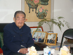 10月10日,是我们敬爱的名誉所长贝时璋院士106岁寿辰。一大早,在他那间并不宽敞的客厅里,早已摆满了社会各界和亲朋好友送来的生日花蓝,其中包括温家宝总理专门派人送来的生日蛋糕和万年青;前来贺寿的人也是络绎不绝。