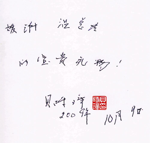 贝时璋先生对温总理的祝贺深表感谢,欣然写下了“敬谢温总理的宝贵礼物!”。