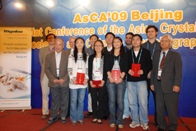 此外,这次大会还得到了一些国际知名公司如:Rigaku公司, 赛默菲世尔公司,MarResearch公司和GE公司等的大力支持。为鼓励更多的青年学者和研究生参与本领域的科学研究,积极参加国际学术交流,国际晶体学会、亚洲晶体学会分别设立了“Travel Grant”,大会组委会也设立了优秀墙报奖,共有25名与会青年学者和研究生获得了上述奖项。