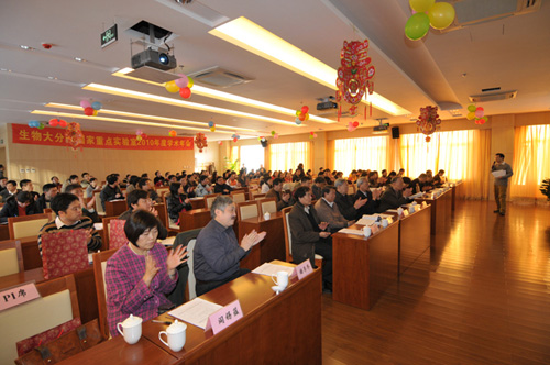 2010年2月4日,生物大分子国家重点实验室2010年度学术年会在生物物理研究所召开。实验室学术委员常文瑞院士、郭爱克院士、李林研究员、林其谁院士、强伯勤院士、施蕴渝院士、田志刚教授、王大成院士、王志珍院士、徐涛研究员、于军研究员、张先恩研究员等11位学委以及实验室名誉主任杨福愉院士、清华大学隋森芳院士、蛋白质科学国家实验室(筹)主任许瑞明、赫荣乔副所长、实验室固定成员、青年学术骨干、研究生、研究所管理和学术支持部门负责同志等近200人参加了此次会议。中科院生物局综合处刘杰处长,生物医学处王丽萍处长、沈毅副处长,科技部基础司基地处王静副处长受邀出席了会议。