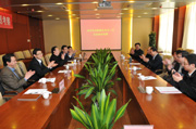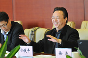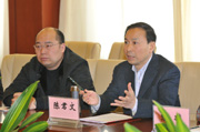 参观结束后,谭铁牛、徐涛等与来访的株洲市委市政府领导进行了座谈。徐涛首先代表生物物理所对谭铁牛、陈君文一行来所参观视察表示热烈欢迎,向他们介绍了生物物理研究所的发展概况,从基础研究和产业化工作两方面入手,重点介绍了知识创新工程以来,研究所围绕蛋白质科学和脑与认知科学两个研究中心,在科研结构调整、创新人才队伍建设、原创性科研成果、近期科研进展及产业化成果等方面取得的系列成绩。