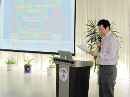 5月10日上午,来自McGill University的John Hiscott教授和Lin Rongtuan教授在生物物理所图书馆为大家带来了两场精彩的学术报告。