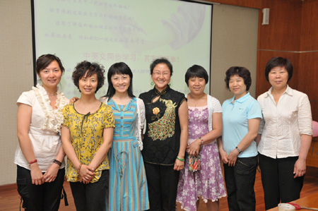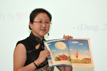本次活动的特邀嘉宾是来自东卡罗莱纳大学的胡冉老师。在简单的自我介绍之后,胡老师通过几个热身问题进入今天的“中英文同步学习”的讲座,向大家详细介绍了幼儿读写能力和双语能力的形成和语言学习法。为了让大家能够加深理解,胡老师结合自己的育儿经验和教学经验,用具体的事例来教大家如何教孩子阅读,如何创造语言环境以及如何鼓励和奖励孩子对英语学习的热情等。胡老师还特意带来了一些幼儿书籍与大家进行分享,并饶有兴致地向大家推荐了优秀的双语幼儿读物系列。大家听得十分认真,并不时地提问,参与交流与讨论,气氛十分热烈。讨论同时,大家提出了不少好的建议,如:苗龙老师提出建立孩子共享图书馆;其他老师和同学也提出孩子的玩具用品等共享的建议。妇委会将认真考虑,争取利用我们妇委会网站等渠道帮助大家实现共享。